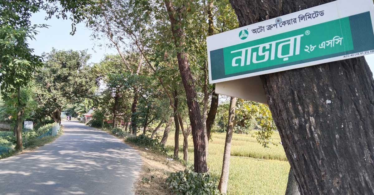 বিভিন্ন ফসলের কীটনাশক ও বালাইনাশক উৎপাদন করে অটো ক্রপ কেয়ার লিমিটেড। ফসলি জমির জন্য উপকারী নানা ওষুধ উৎপাদন করলেও গাছের বিষয়ে তারা যেন উদাসীন। রাস্তার ধারের গাছে বড় বড় পেরেক দিয়ে নিজেদের বিভিন্ন কীটনাশক ও বালাইনাশকের বিজ্ঞাপন প্রচার করেছে তারা।