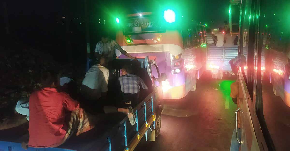 আরেকটি বাসের যাত্রী জান্নাতুন্নাহার বলেন, ঢাকা-আরিচা মহাসড়কের বিশমাইল থেকে সেলফি পরিবহনে আরিচা ঘাট পর্যন্ত যাওয়ার জন্য উঠেছি। নবীনগর যাওয়ার ১০ মিনিটের রাস্তা আসতে ১ ঘণ্টা লেগেছে। গাড়ির চাকা এখন বন্ধ রয়েছে। পুরো রাস্তায় থেমে থেমে গাড়ি চলছে। যে কোনোভাবে বাড়িতে পৌঁছাতে পারলেই হলো।