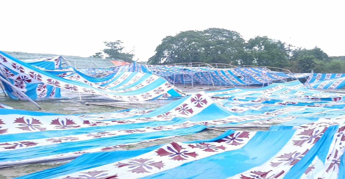রাজশাহীতে প্রধান ঈদের জামাত অনুষ্ঠিত হওয়ার কথা ছিল সকাল ৮টায় নগরীর হযরত শাহ মখদুম রূপোস (রহ.) কেন্দ্রীয় ঈদগাহ ময়দানে। সব আয়োজন ছিল ঠিকঠাক। কিন্তু ভোরে হঠাৎ দমকা হাওয়া এবং বৃষ্টিতে ভেসে গেছে সব আয়োজন।