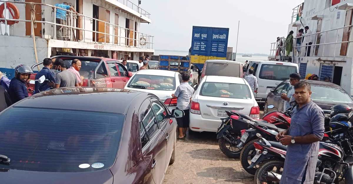 সময় বাড়ার সঙ্গে সঙ্গে এই সারি আরও বাড়ার সম্ভবনা রয়েছে। তবে ১৯টি ফেরি চলাচল করাই যাত্রীবাহী বাসকে ঘাট এলাকায় খুব একটা বেশি অপেক্ষা করতে হচ্ছে না।