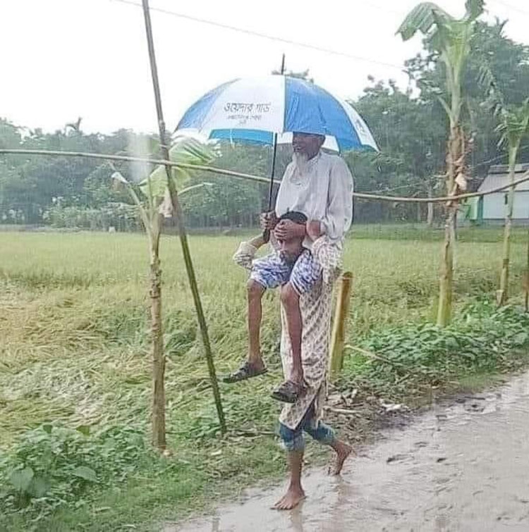 পবিত্র ঈদুল ফিতরের জামাতে অংশ নিতে গিয়ে ঝড়-বৃষ্টিতে ঈদগাহে আটকে পড়া অসুস্থ বৃদ্ধ বাবাকে কাঁধে করে বাড়িতে নিয়ে আসার একটি ছবি গত কয়েকদিন ধরে সামাজিক যোগাযোগ মাধ্যম ফেসবুকে ভাইরাল হয়েছে। গত মঙ্গলবার (৩ মে) ঈদুল ফিতরের দিন কিশোরগঞ্জের পাকুন্দিয়া উপজেলার সুখিয়া গ্রামের পশ্চিমপাড়ার সরকার বাড়িতে এ ঘটনা ঘটে।