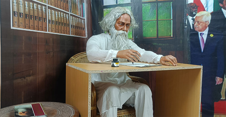 পরের কামরাটি আলো-ঝলমলে। ঢুকতেই রাইফেল কাঁধে দাঁড়ানো বিপ্লবের বিশ্বপ্রতীক চে গুয়েভারা। এই কক্ষের এক কোণে বসে কাব্যচর্চায় মগ্ন কবিগুরু রবীন্দ্রনাথ ঠাকুর। পাশে দাঁড়িয়ে বিদ্রোহী কবি কাজী নজরুল ইসলাম ও ভারতীয়-বাঙালি বিপ্লবী ক্ষুদিরাম বসু।