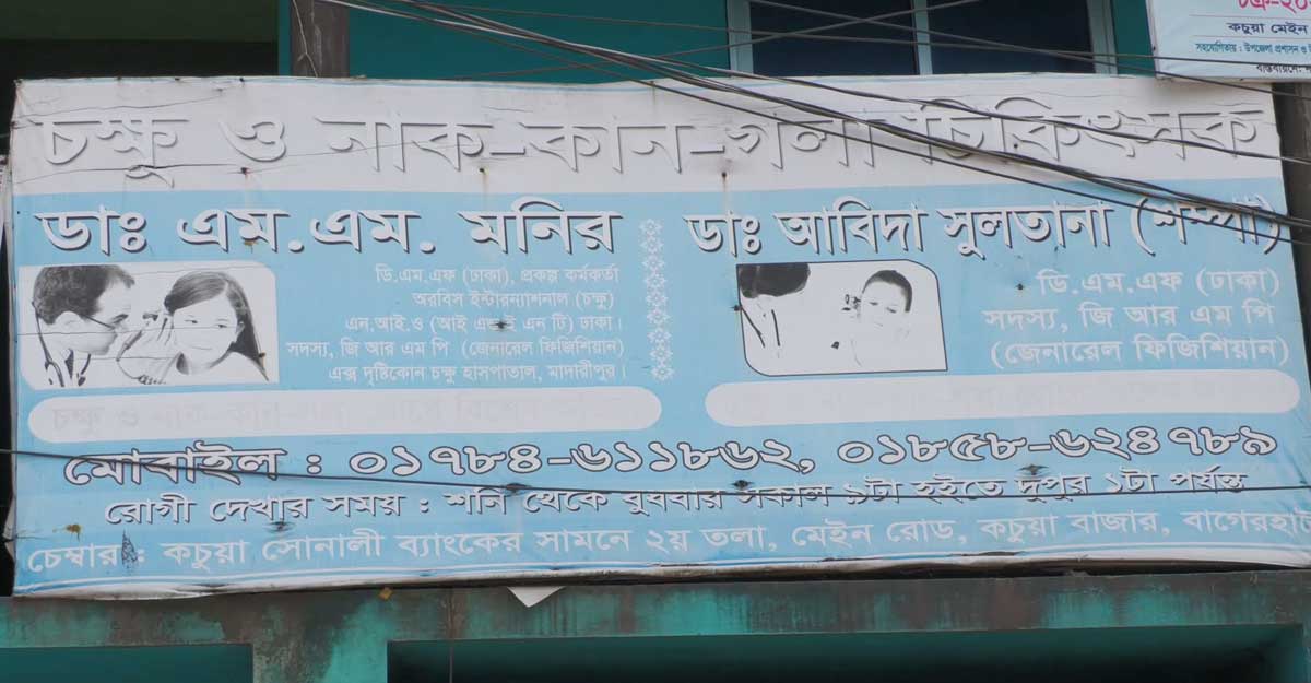 বাগেরহাটের কচুয়া উপজেলায় এম এম মনির নামে এক ভুয়া চিকিৎসককে এক লাখ টাকা জরিমানা অনাদায়ে, দুই মাসের কারাদণ্ডের আদেশ দিয়েছেন ভ্রাম্যমাণ আদালত।
