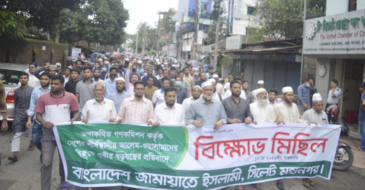 প্রত্যক্ষদর্শী সূত্রে জানা যায়, দুপুর ২টায় বিপুল সংখ্যক নেতাকর্মী বন্দর বাজার ওরিয়েন্টাল মার্কেটের সামনে থেকে গণকমিশন কর্তৃক ধর্মব্যবসায়ী হিসেবে ১১৬ জন আলেমের তালিকা প্রকাশের প্রতিবাদে বিক্ষোভ মিছিল নিয়ে নগরের জেলরোড পয়েন্টে এক সমাবেশে মিলিত হয়।