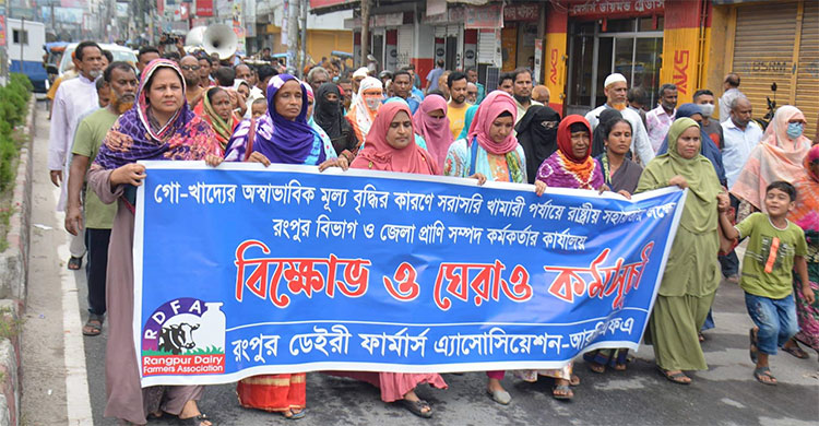 রংপুর ডেইরি ফার্মারস অ্যাসোসিয়েশনের সভাপতি লতিফুর ইসলাম মিলন বলেন, জেলায় ছোট-বড় মিলে প্রায় ১০ হাজার খামারি রয়েছেন। গত সাত-আট মাসে অনেকেই তাদের খামার থেকে গরু বিক্রি করে দিয়েছেন। পশুখাদ্যের দাম অস্বাভাবিক বাড়ায় আমাদের প্রান্তিক খামারিরা সবচেয়ে বেশি কষ্টে আছেন। সামনে কোরবানি ঈদ, তারপরও খামারি গরু ধরে রাখতে পারছেন না। আর কত দিন আমরা ভর্তুকি দিয়ে চলব। সরাসরি খামারি পর্যায়ে রাষ্ট্রীয় সহায়তা দিতে হবে। একই সঙ্গে বর্তমান বাজার পরিস্থিতি বিবেচনায় নিয়ে উৎপাদিত দুধের দাম বাড়াতে হবে।