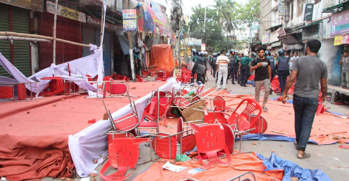 পিকচার প্যালেস মোড়ে তাদের সঙ্গে ছাত্রদলের নেতাকর্মীদের সংঘর্ষ হয়। হামলা ভাংচুর ও সংঘর্ষে ২০ জন আহত হয়েছেন। ঘটনাস্থলে পুলিশ ও ছাত্রলীগের সঙ্গে বিএনপি নেতাকর্মীদের থেমে থেমে ইট-পাটকেল ও টিয়ার শেল নিক্ষেপের ঘটনা ঘটে।