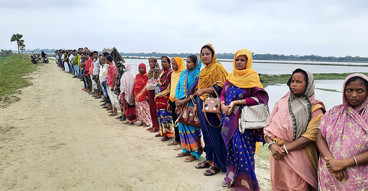 বুধবার (১ জুন) দুপুরে নিজেদের জমি দখল মুক্ত করার দাবিতে মিস্ত্রিডাঙ্গা এলাকায় মানববন্ধন ও বিক্ষোভ মিছিল করেছেন ভুক্তভোগী স্থানীয়রা। ঘণ্টাব্যাপী মানববন্ধনে জমি দখলমুক্ত করাসহ ভূমিদস্যুদের বিচার দাবি করেন তারা।