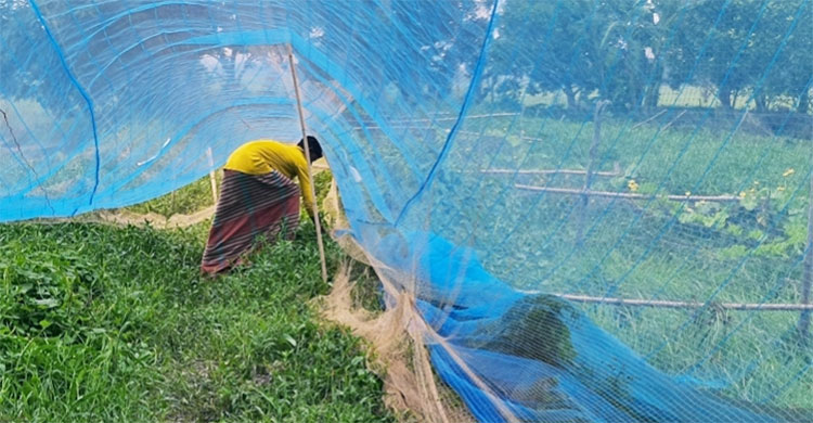 সরেজমিনে দেখা যায়, আহসান হাবির নামে এক চাষি বাড়ির পেছনে দেড় একর জমিতে আম ও জামের বাগান করেছেন। এই বাগানে প্রতিদিন শালিক, বুলবুলি, দোয়েল ও ফিঙ্গেসহ নানা প্রজাতির বহু পাখি আসছে। পাখির হাত থেকে ফল রক্ষা করতে গাছগুলোতে ছোট ফাঁসের জাল দিয়ে ঢেকে দেওয়া হয়েছে। জালের ভেতরে পাখি প্রবেশ করতে পারলেও আর বের হতে পারছে না। আটকে পড়ে পাখিরা মার যাচ্ছে। এতে হুমকিতে পড়ছে জীববৈচিত্র্য।