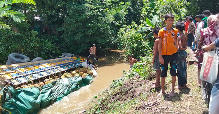 ১৭৫০ কাঁঠাল নিয়ে ট্রাক গেল খালে
