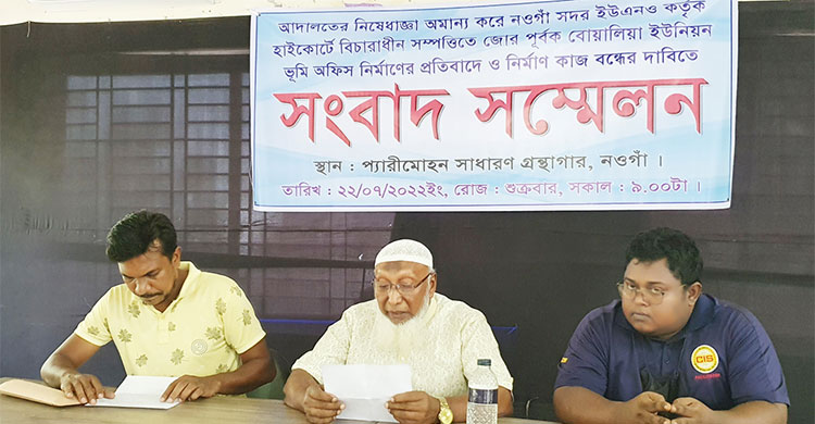 নওগাঁয় আদালতের নিষেধাজ্ঞা অমান্য করে ভূমি অফিস নির্মাণ