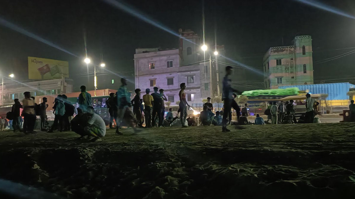 মঙ্গলবার (১৮ এপ্রিল) রাত ১১টার দিকে ঢাকা-আরিচা মহাসড়কের সাভারের আমিনবাজার বাসস্ট্যান্ডে এমন মানুষের ভিড় দেখা যায়। সড়কে গাড়ি নেই, ভাড়াও বেশি বলে দাবি করেছেন তারা।