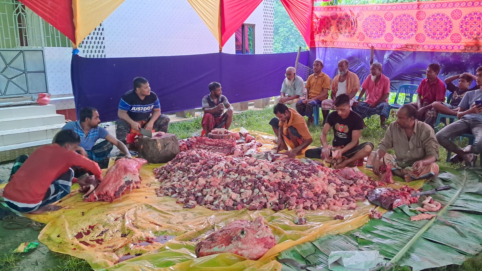 বৃহস্পতিবার (২৯ জুন) বিকেলে কিশোরগঞ্জ জেলার পাকুন্দিয়া উপজেলার জাঙ্গালিয়া ইউনিয়নের চরকাওনা উত্তরপাড়া এলাকার বুলবুল আহমেদ (৩৭) এ গরুকে নিজ বাড়িতে কোরবানি শেষে তা বিতরণ করেন। প্রধানমন্ত্রীর বিশেষ সহকারী কৃষিবিদ মশিউর রহমান হুমায়ুন উপস্থিত থেকে দরিদ্র-অসহায় মানুষের মাঝে এর মাংস বিতরণ করেন।