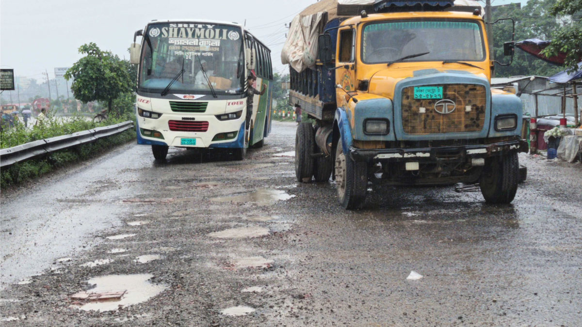 বৃষ্টিতে বেহাল ঢাকা-ময়মনসিংহ মহাসড়ক, ধীরগতিতে চলছে যানবাহন