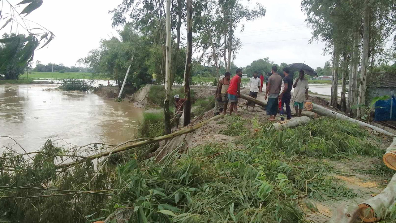স্থানীয়রা জানান, বৃহস্পতিবার দিবাগত ভোররাত ৪টার দিকে বাঁধটি ভেঙে যায়। এতে সঙ্গে সঙ্গে কয়েকটি ঘর-বাড়ি, গবাদিপশু, গাছ-পালা, পুকুরের মাছ ভেসে যাওয়ার পাশাপাশি ফসলের ক্ষেত নষ্ট হয়। তবে বাঁধ রক্ষায় কোনো ব্যবস্থা নেওয়া হয়নি বলে অভিযোগও উঠেছে।