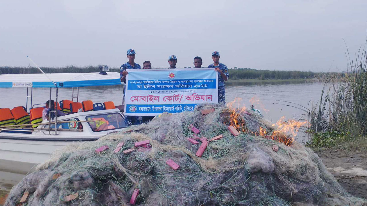 চাঁদপুর সদর উপজেলা সিনিয়র মৎস্য কর্মকর্তা মো. তানজিমুল ইসলাম বলেন, শনিবার সন্ধ্যা ৬টা থেকে আজ রোববার দুপুর ১টা পর্যন্ত চাঁদপুর সদর উপজেলার মেঘনা নদীর অভয়াশ্রম এলাকায় অভিযান পরিচালনা করে ২৭ জেলেকে আটক করা হয়। এর মধ্যে ২০ জনকে ভ্রাম্যমাণ আদালতে বিভিন্ন মেয়াদে কারাদণ্ড প্রদান করা হয় এবং ৭ জেলে অপ্রাপ্ত বয়স্ক হওয়ায় মুচলেকা রেখে ছেড়ে দেওয়া হয়। এছাড়া ১ লাখ ৩৫ হাজার মিটার কারেন্ট জাল জব্দ করে পুড়িয়ে নষ্ট করা হয়েছে। এ সময় ৫০ কেজি ইলিশ ও ছয়টি মাছ ধরার নৌকা জব্দ করা হয়। পরে ইলিশগুলো এতিমখানা, গরিব ও দুঃস্থদের মাঝে বিতরণ করা হয়।