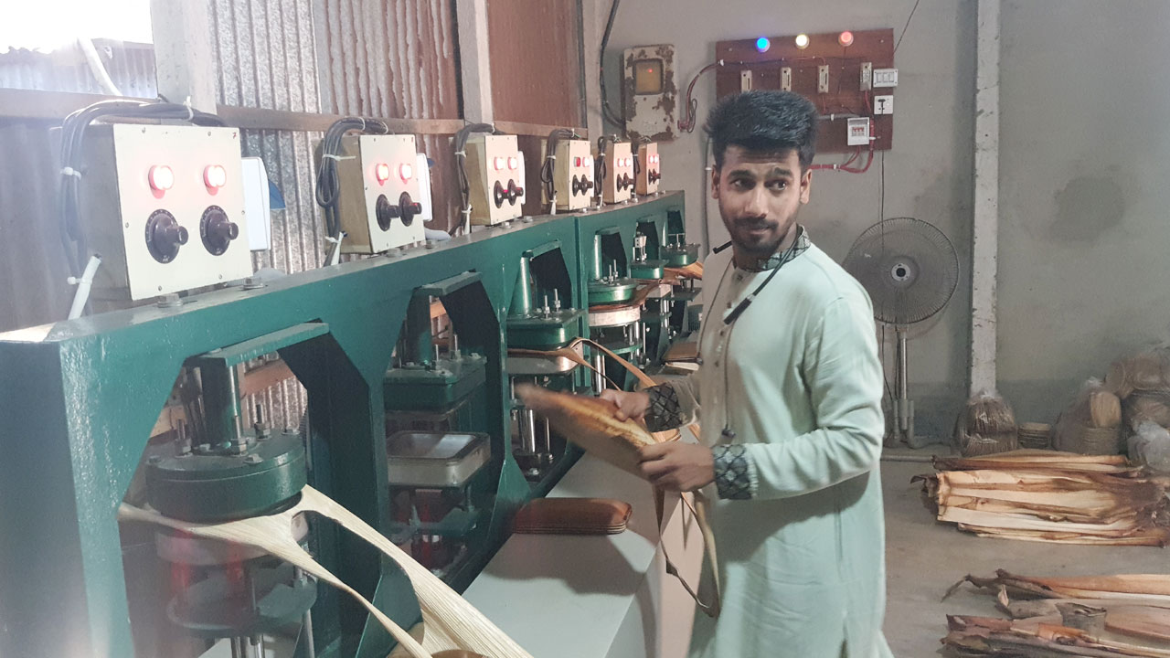সুপারি পাতার খোলে তৈরি হচ্ছে বাহারি পণ্য