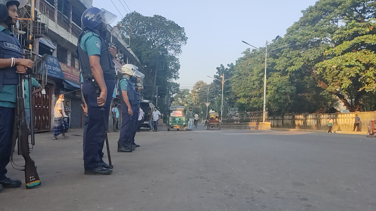 সিলেটে চলছে ‘শান্তিপূর্ণ হরতাল’, সড়কে পুলিশের অবস্থান