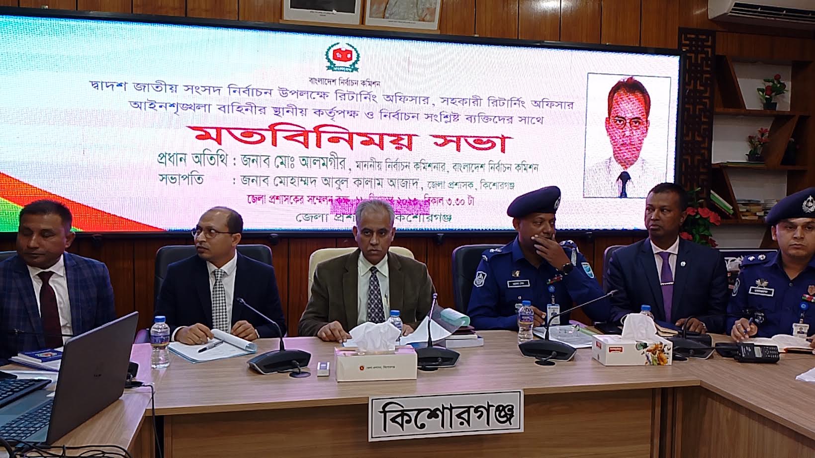 এদিন বিকেলে কিশোরগঞ্জ জেলা প্রশাসক সম্মেলন কক্ষে জেলা রিটার্নিং অফিসার, সহকারী রিটার্নিং অফিসার, আইনশৃঙ্খলা বাহিনীর স্থানীয় কর্তৃপক্ষ ও নির্বাচন সংশ্লিষ্ট ব্যক্তিদের সঙ্গে মতবিনিময় সভা অনুষ্ঠিত হয়। জেলা প্রশাসক ও জেলা রিটার্নিং অফিসার আবুল কালাম আজাদের সভাপতিত্বে মতবিনিময় সভায় প্রধান অতিথি হিসেবে উপস্থিত ছিলেন নির্বাচন কমিশনার মো. আলমগীর।
