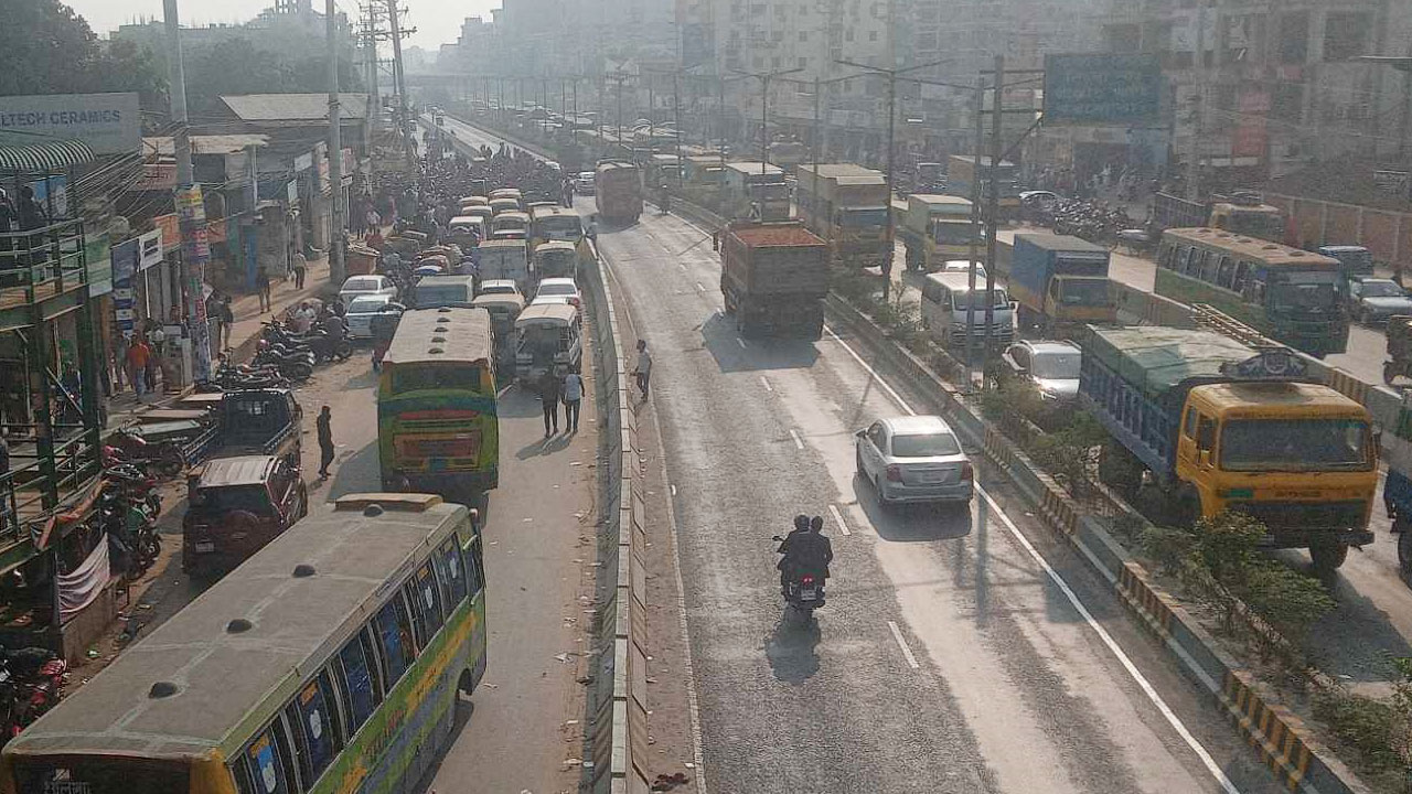 মঙ্গলবার (১৯ ডিসেম্বর) বেলা ১১টা থেকে দুপুর ১টা পর্যন্ত ঢাকা-আরিচা মহাসড়কের বিপিএটিসি বাসস্ট্যান্ড থেকে শুরু করে বলিয়ারপুর বাসস্ট্যান্ড পর্যন্ত ৭ কিলোমিটার যানজটের সৃষ্টি হয়।
