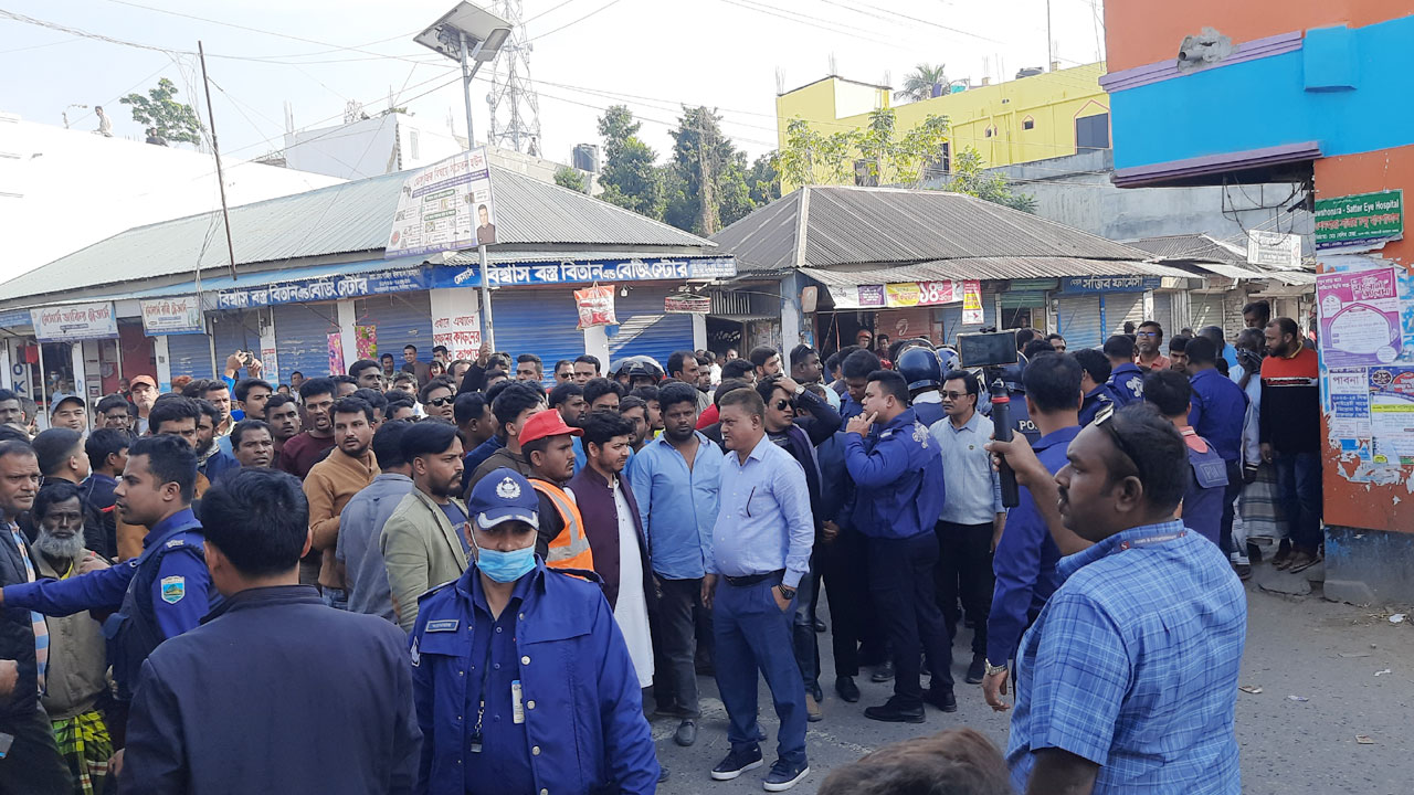 পুলিশ বারবার উভয় পক্ষকে সরে যেতে বলে, কিন্তু কেউই সরে যাননি। অধ্যাপক আবু সাইয়িদ অবশ্য পাশে একটু সরে গিয়ে অবস্থান নেন। নৌকার সমর্থকরা তাদের জায়গায় দাঁড়িয়ে স্লোগান দিতে থাকেন।