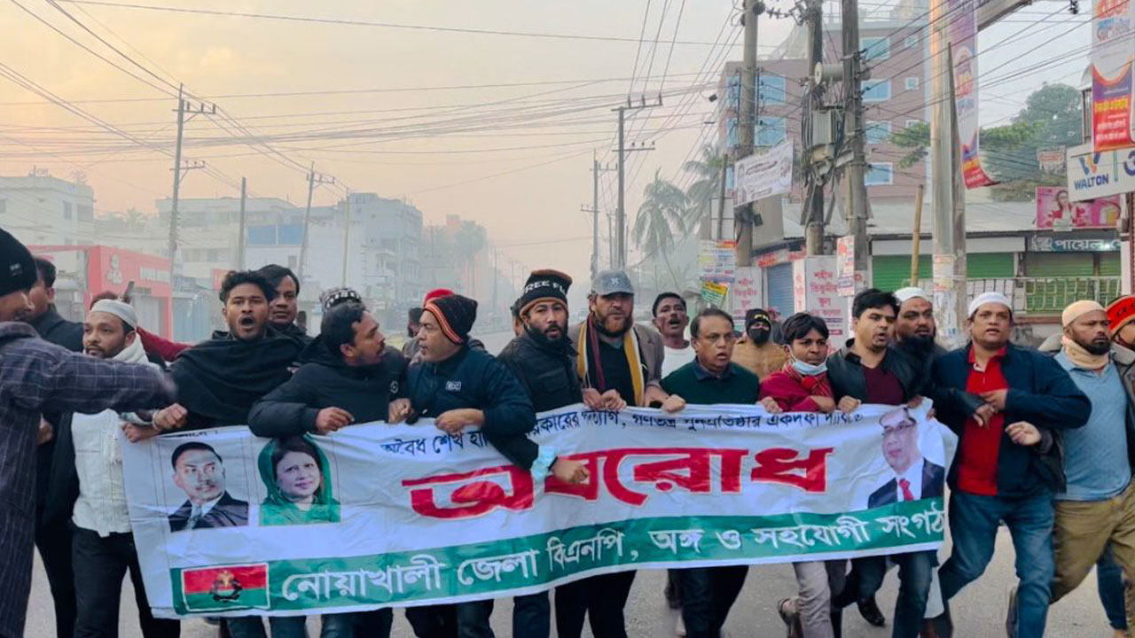অবরোধের সমর্থনে নোয়াখালীতে বিএনপির মিছিল