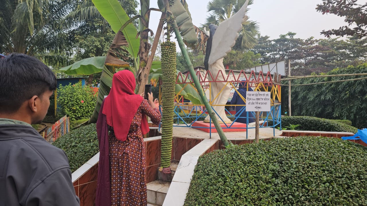 একটি কলার ছড়িতে সাধারণত কয়েক ডজন কলা ধরে। কিন্তু গাজীপুরে একটি পার্কের কলাগাছের এক ছড়িতেই ধরেছে প্রায় আড়াই হাজার কলা। সাত ফুট লম্বা ছড়িটি যাতে হেলে না পড়ে এজন্য দুপাশে বাঁশ দিয়ে খুঁটি দেওয়া হয়েছে। এমন অদ্ভুত কলা গাছটি দেখতে প্রতিদিন উৎসুক মানুষ ভিড় করছে পার্কে। যা সামাজিক যোগাযোগ মাধ্যমে ব্যাপক আলোচনার জন্ম দিয়েছে।
