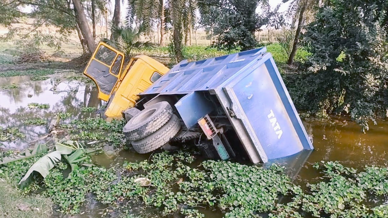 শুক্রবার (২৯ ডিসেম্বর) দুপুর ১টার দিকে এ সংঘর্ষের ঘটনা ঘটে। এতে যাত্রীবাহী বাস ও পাথর বোঝায় ট্রাকটি ডোবায় পড়ে যায়।