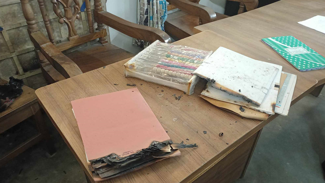 বাবুগঞ্জে ভোটকেন্দ্রে দুর্বৃত্তের আগুন
