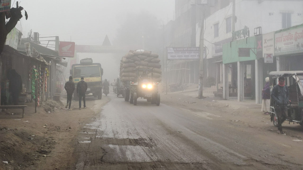 ঘন কুয়াশার চাদরে ঢাকা দিনাজপুর