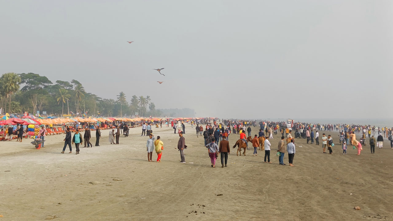 বৃহস্পতিবার (২৫ জানুয়ারি) মধ্যরাত থেকেই কুয়াকাটায় আসতে থাকে পর্যটকরা। দেশের বিভিন্ন জায়গা থেকে আসা পর্যটকদের পদচারণায় মুখরিত হয়ে উঠেছে কুয়াকাটা। হোটেল-মোটেল, রিসোর্ট, বিনোদন কেন্দ্রসহ সৈকতের বিভিন্ন পয়েন্টে পর্যটকদের ভিড় ছিল চোখে পড়ার মতো। গত এক সপ্তাহের বৈরী আবহাওয়া শেষে আজ শুক্রবার (২৬ জানুয়ারি) পুরোপুরি পরিষ্কার ছিল কুয়াকাটার আকাশ। আবহাওয়া অনুকূলে থাকায় পর্যটকরাও উল্লাসে মাতেন।