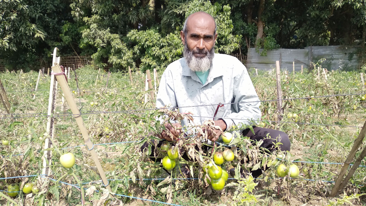 গঞ্জপাড়া এলাকার কৃষক মো. রফিকুল ইসলাম বর্গা নিয়ে ৩০ শতক জমিতে টমেটো চাষ করেছেন। টমেটো চাষ করতে এখন পর্যন্ত ৪৫ হাজার টাকা খরচ করেছেন। প্রচুর ফলন এসেছে টমেটোর, কিন্তু গাছ মরে নষ্ট হয়ে গেছে সব টমেটো। জমি থেকে এক কেজি টমেটো বিক্রি করতে পারেননি তিনি। কৃষি সম্প্রসারণ বিভাগের পরামর্শ নিয়েও বিফল হয়েছেন দাবি তাঁর।