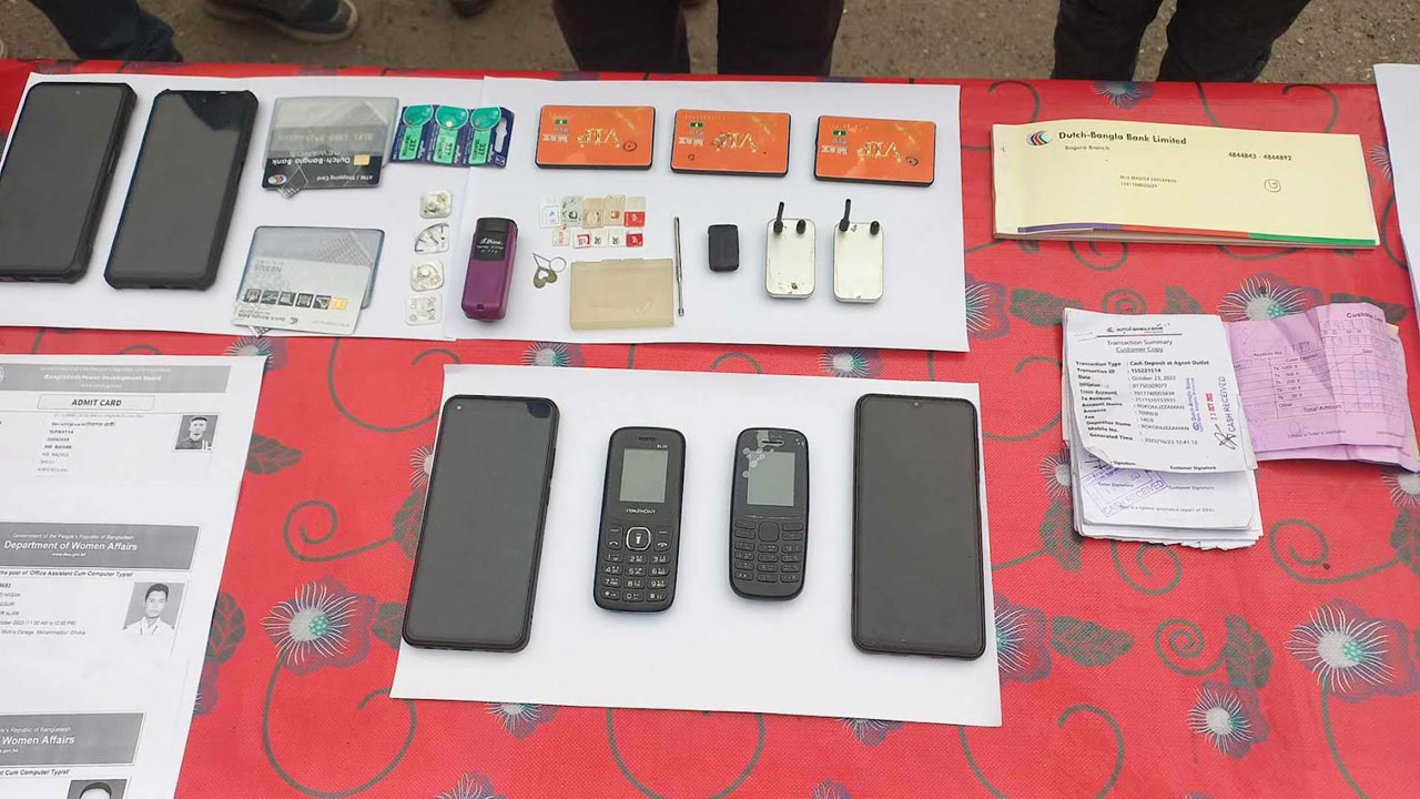 পুলিশ সুপার আরও বলেন, হৃদয় ও রোকন বিশ্ববিদ্যালয় থেকে পড়াশোনা শেষে প্রতারণার কাজে জড়িয়ে পড়ে। তাদের কাছ থেকে সরকারি প্রাথমিক বিদ্যালয়ের শিক্ষক নিয়োগ পরীক্ষার প্রবেশপত্র, চেকবই, এটিএম কার্ড, বিভিন্ন প্রকারের ডিভাইস, ছয়টি মোবাইল ফোন, সিম, অ্যান্টেনা, এয়ার পট, ইলেক্ট্রনিক ডিভাইসসহ বিভিন্ন সামগ্রী জব্দ করা হয়। তাদের বিরুদ্ধে আইনগত ব্যবস্থা প্রক্রিয়াধীন রয়েছে।