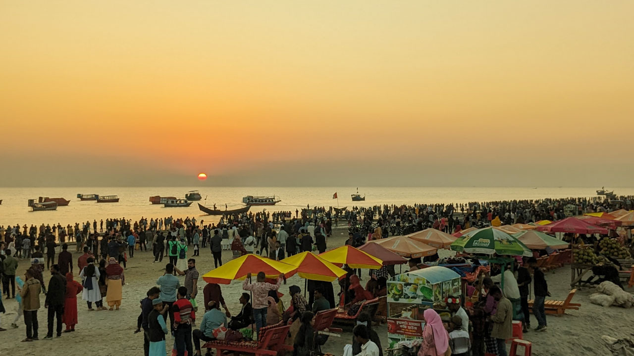 ছুটির দিনে কুয়াকাটা সৈকতে পর্যটকের ঢল