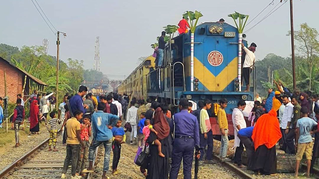 এদিকে, ২৪টি কোচের বিশাল ট্রেনটি রাজবাড়ী রেলস্টেশনে প্রায় সারা দিন অবস্থান করে। আয়োজকদের পক্ষ থেকে সাজানো হয় ইঞ্জিনসহ ট্রেনটির সকল বগি। ট্রেনটি দেখতে এবং যাত্রীদের বিদায় জানাতে দূরদূরান্ত থেকে ২০ থেকে ৩০ হাজার ভক্ত ও দর্শনার্থীর আগমন ঘটে। দুপুর ২টা ৩৫ মিনিটের দিকে ট্রেনটি রাজবাড়ী রেলস্টেশন এলাকায় আসে। এরপর ট্রেনটিকে আরও সাজানো হয়। এরপর বিকেলে ট্রেনটি রাজবাড়ী রেলস্টেশনের ২নং প্ল্যাটফর্মে আনা হয়। ট্রেনটিকে এক নজর দেখতে বিকেল থেকেই রাজবাড়ী রেলস্টেশন এলাকায় সর্বস্তরের মানুষ ভিড় করতে থাকে। কেউ কেউ তাদের পরিবারের লোকজন ও আত্মীয়স্বজনকে বিদায় দিতে আসতে দেখা যায়। এ সময় তাদের একে অপরের থেকে দোয়া নিতে দেখা যায়।