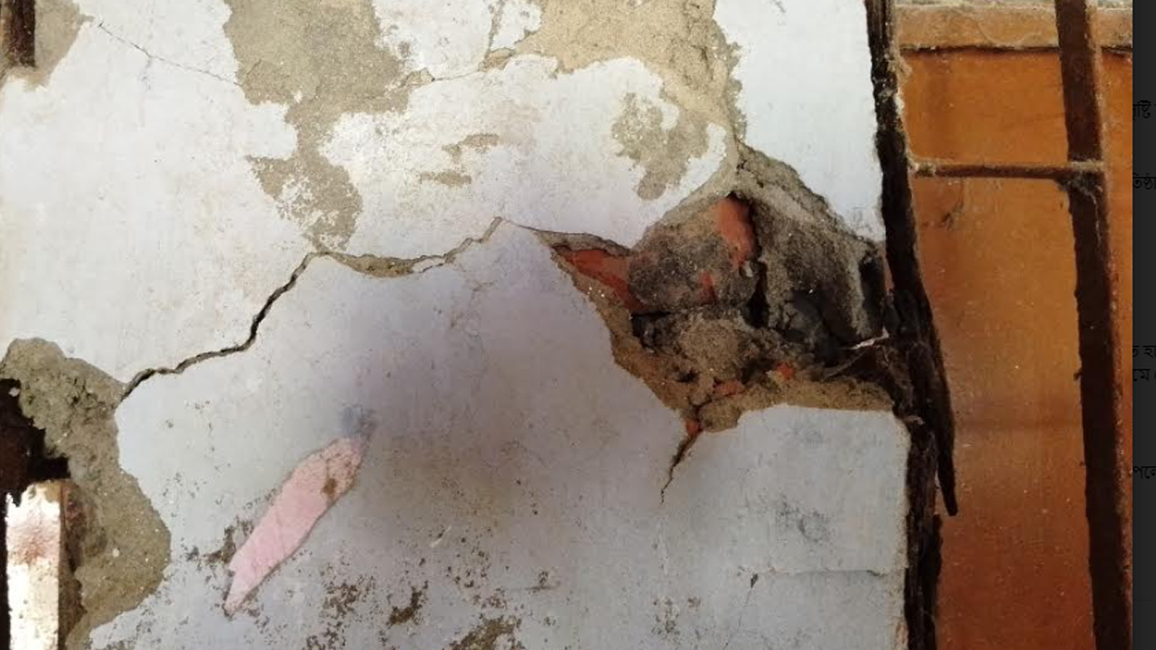 খসে পড়ছে পলেস্তারা-টিনের চালায় ছিদ্র, ঝুঁকি নিয়ে চলছে পাঠদান