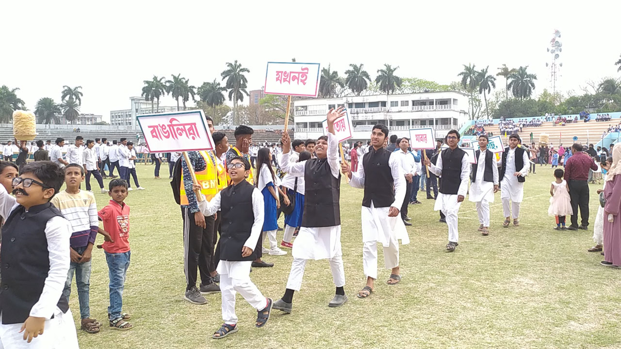 স্টেডিয়ামে জাতীয় সংগীতের মাধ্যমে বিকেল ৫টার দিকে ‘আলোচনা সভা ও ভিন্ন ভাষাভাষী/বিদেশিদের মাধ্যমে ৭ই মার্চের ভাষণ/ ভাষণের গুরুত্ব উপস্থাপন’ অনুষ্ঠান শুরু হয়।