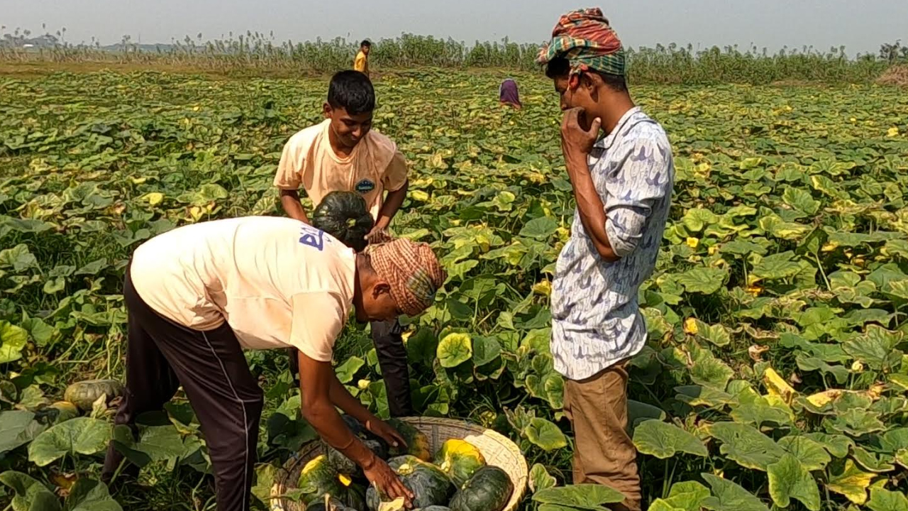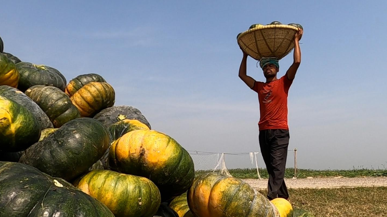 হাওরের পতিত জমিতে মিষ্টিকুমড়ার বাম্পার ফলন, কৃষকের মুখে হাসি