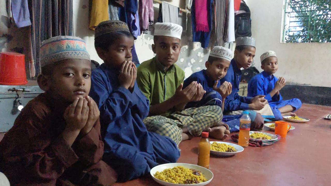 পবিত্র রমজানে শিক্ষার্থীদের খবর নিতে এই এতিমখানায় যান ঢাকা পোস্টের প্রতিনিধিরা। জোহরের নামাজ শেষে দেখা যায়, মাদরাসায় আরবি পড়তে ব্যস্ত ছাত্ররা। এরপর এখানে পর্যায়ক্রমে পড়ানো হবে বাংলা ইংরেজি, অংক, সাধারণ বিজ্ঞান। আসরের নামাজ শেষ করে মাদরাসার মাঠে খেলাধুলা করে সময় করেছিল তারা। খেলাধুলা শেষ করে ওযু করে ইফতারের জন্য প্রস্তুতি শুরু করে তারা। প্রতিদিন ইফতার আসে পার্শ্ববর্তী মসজিদ থেকে। একেক দিন এলাকার বিভিন্ন মানুষ নানা পদের ইফতার সামগ্রী দিয়ে থাকে এই মসজিদে। কখনও চিড়া, খেজুর, ছোলা আবার কখনও খিচুড়ি, তেহেরি দিয়ে ইফতার করে বাচ্চারা। গত বৃহস্পতিবার ছিল খিচুড়ির ব্যবস্থা।