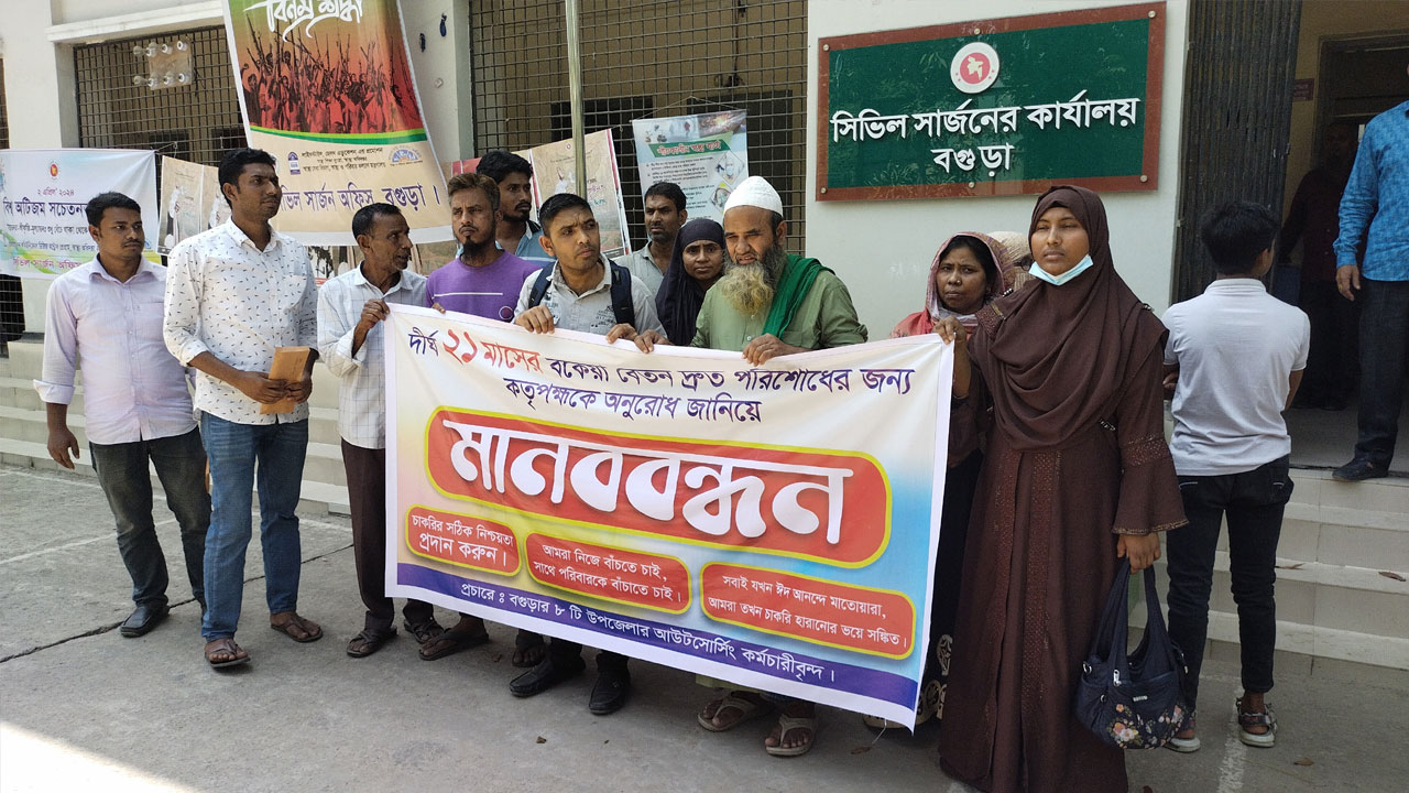 তার মতো এমন অবস্থা বগুড়ার আট উপজেলা স্বাস্থ্য কমপ্লেক্সের মোট ৩২ জন সেবাপ্রদানকারীর। বিষয়টির সুরাহা পেতে তারা দরখাস্ত নিয়ে বগুড়া সিভিল সার্জন অফিসে অবস্থান নেন। কিন্তু জেলা স্বাস্থ্যবিভাগও নিজেদের কোনো দায় নেই বলে তাদের থেকে মুখ ফিরিয়ে নিচ্ছে।