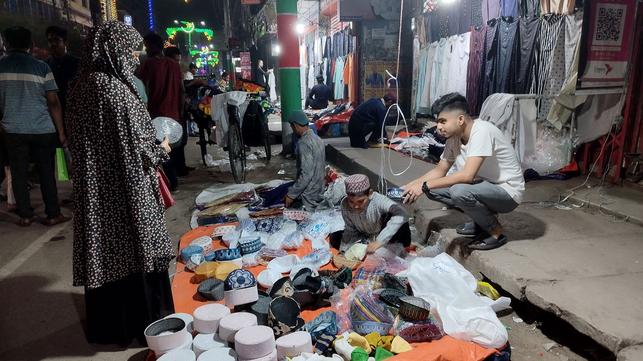 ভ্রাম্যমাণ দোকানের একাধিক ব্যবসায়ী বলেন, ঈদ ঘনিয়ে আসার সঙ্গে সঙ্গে ক্রেতার সংখ্যাও বাড়ছে। সকালে চাপ না থাকলেও বিকেল হওয়ার পরপরই ক্রেতাদের চাপ বাড়তে থাকে। বিভিন্ন ব্র্যান্ডের প্রতিষ্ঠান ও বিপণি বিতানের তুলনায় ঈদ সামগ্রীর দাম ফুটপাতে অনেকটা সাধ্যের মধ্যে থাকায় এখানে আসছেন নিম্নমধ্যবিত্ত শ্রেণির মানুষজন। তারমধ্যে বেশিরভাগ লোকজনই আতর, টুপি ও পাঞ্জাবি কিনতে দোকানগুলোতে ভিড় করছেন।