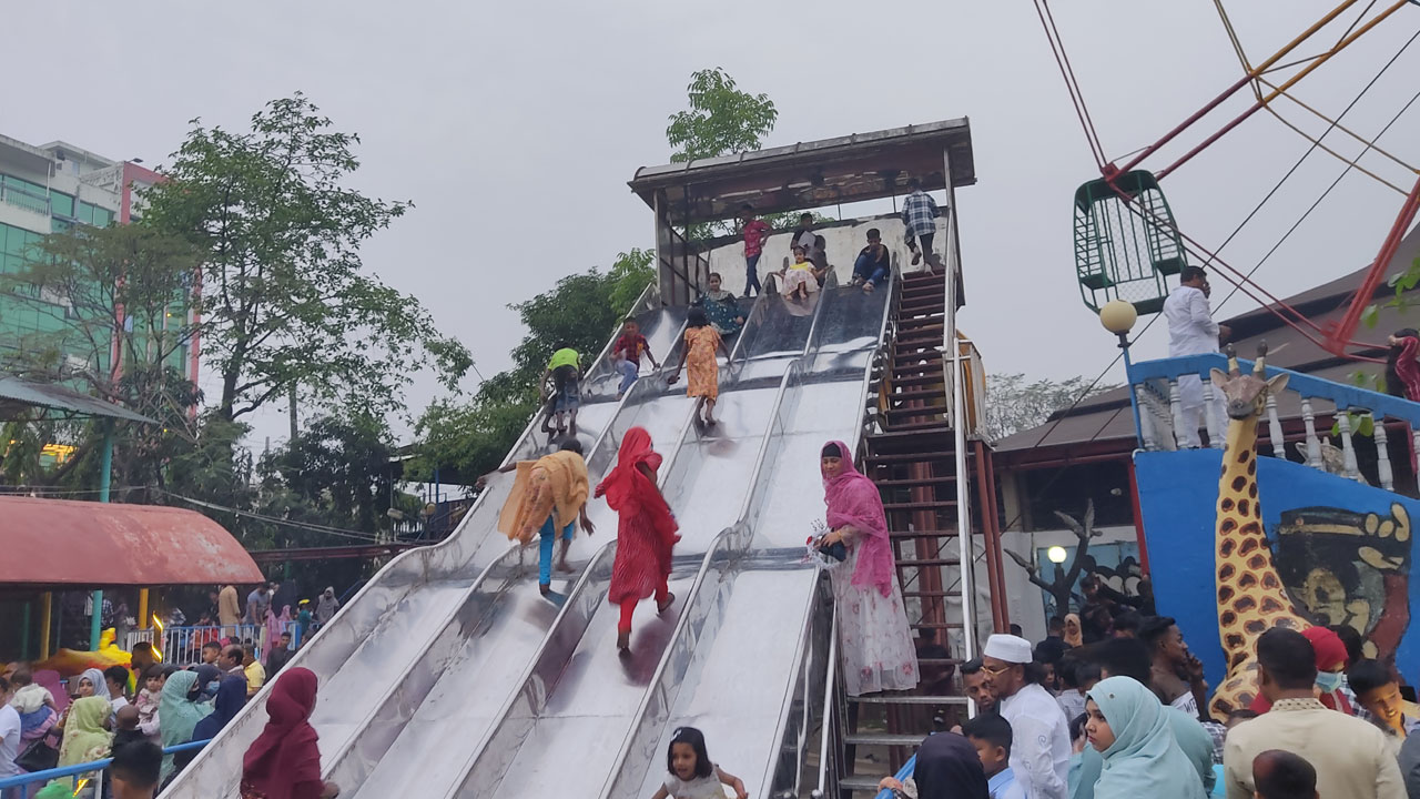 সরেজমিনে দেখা যায়, বুধবার (১১ এপ্রিল) বিকেল ৩টার পর থেকে বিভিন্ন জায়গা থেকে মানুষজন আসতে শুরু করে এই শিশু উদ্যানে। প্রায় দুই যুগ আগে নির্মিত এই শিশু উদ্যানটিতে প্রতি বছরই বিভিন্ন উৎসব-পার্বণে ভিড় লেগেই থাকে। এখানে ঘুরতে আসা দর্শনার্থীদের জন্য রয়েছে প্রায় ২২টি রাইড। এর মধ্যে উল্লেখযোগ্য হিসেবে রয়েছে বাম্পার কার, রোলার কোস্টার ও লাইভ ম্যাজিক শো। এছাড়াও রয়েছে নাগরদোলা, ময়ুর রাইড, ইলেকট্রিক ট্রেইন, এয়ার সাইকেল, বিভিন্ন রকমের স্লিপার, হর্স রাইড, ফ্লাওয়ার রাইডসহ নানা ধরনের রাইড।