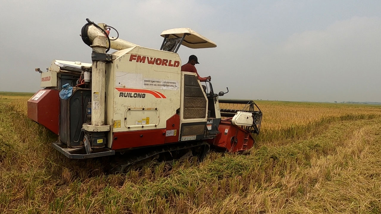 কম্বাইন হারভেস্টারের সুফল পাচ্ছেন হাওরের কৃষকরা