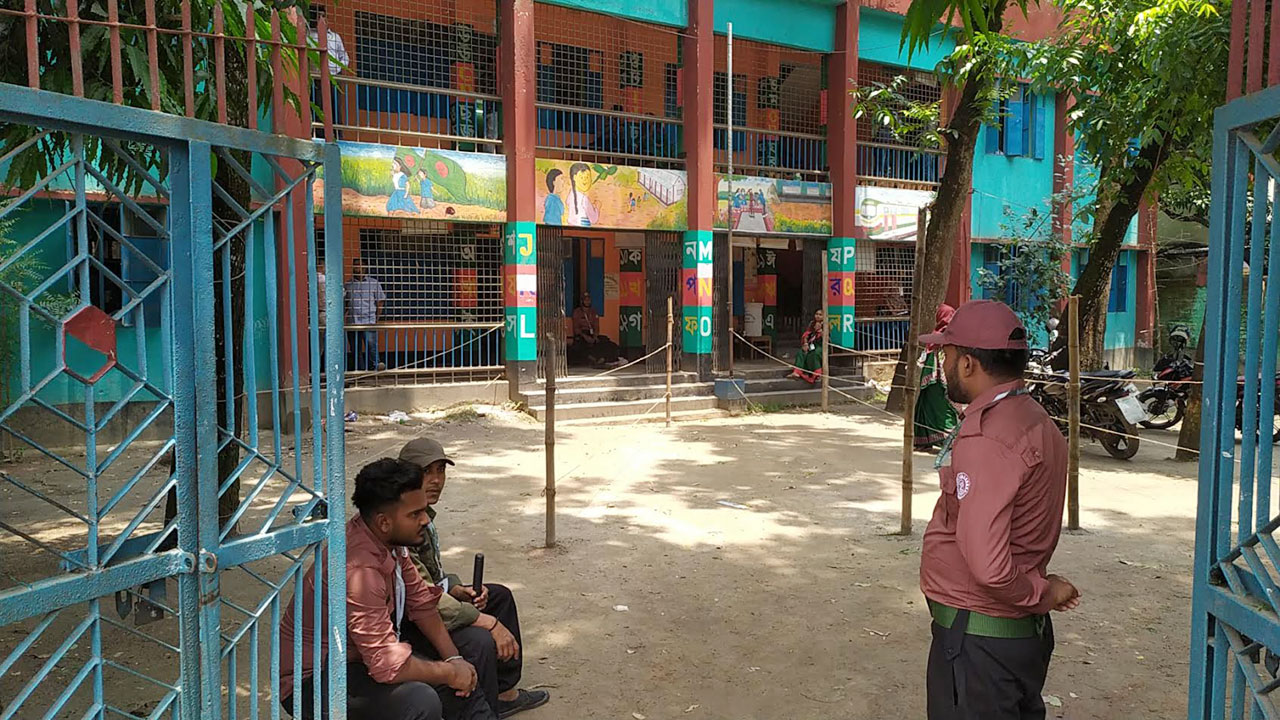 ওই কেন্দ্র ঘুরে দেখা গেছে, স্কুল ভবনের নিচতলা, উপরতলা ও পাশের একতলা ভবনে ভোটগ্রহণের জন্য নারী-পুরুষের জন্য আলাদা করে সারি করে রশি টানিয়ে দেওয়া হয়েছে। তবে ওইসব সারি পুরোটাই ফাঁকা দেখা গেছে। মাঝেমধ্যে দু-একজন ভোটার এসে খুব সহজেই ভিড়বিহীন পরিবেশে ভোট দিয়ে চিলে যাচ্ছেন। ভিড় না থাকায় তিন নারী আনসার সদস্য নিজেদের মধ্যে গল্প করছেন। চার পুরুষ আনসার সদস্যও কেন্দ্রের মাঠের বেঞ্চে বসে রয়েছেন। কেন্দ্রের মূল ফটকে চেয়ারে ওয়াকিটকি হাতে বসে রয়েছেন পুলিশের সদস্যরা।