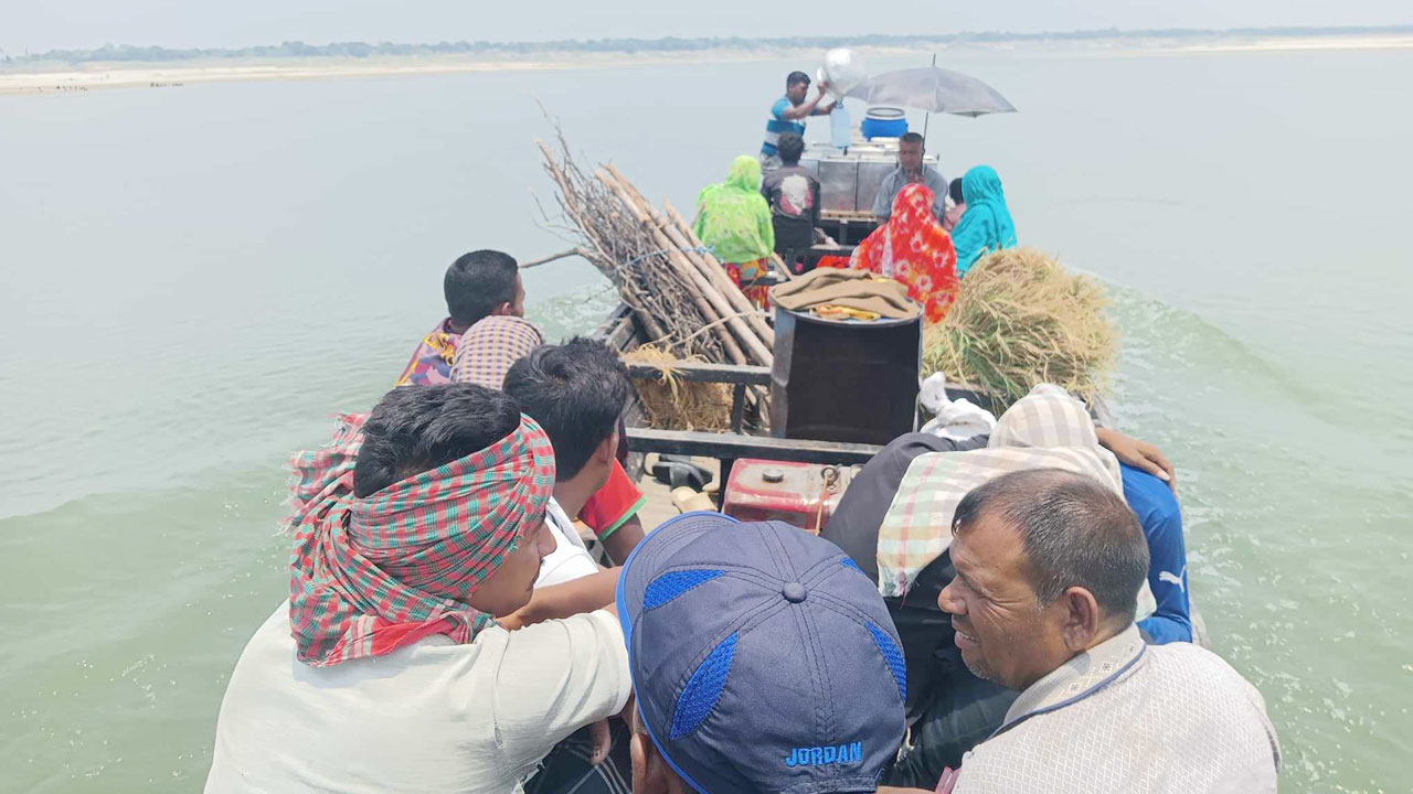 সেই সময় চরে থাকা ঘোষ ছাড়াও কৃষক ও মাঝিরা নৌকায় উঠেন নদী পারাপারের উদ্দেশ্যে। এই পারাপারের জন্য প্রত্যেককে দিতে হয় ২০ টাকা। আর ঘাটে দিতে হয় ১০ টাকা। নৌকা যে পথে যায় আবার সেই পথে ফিরে সাতবাড়িয়া ঘাটে ভিড়ে।