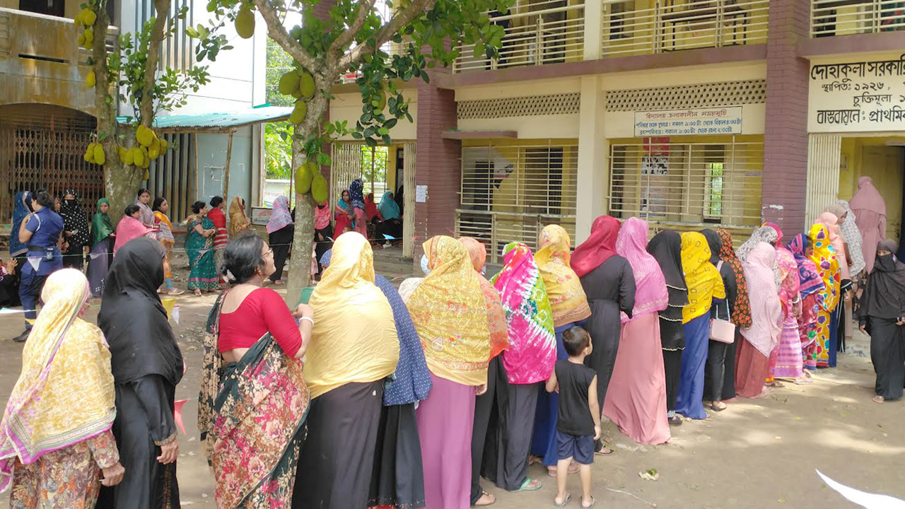 এই কেন্দ্রের আরেক নারী ভোটার হোসনেয়ারা খাতুন বলেন, সকালে আমার স্বামী আর ছেলেরা ভোট দিয়ে গেছে। তারা ভোট দিয়ে বাড়িতে গেলে আমি ঘরের কাজ সেরে ভোট দিতে এসেছি।