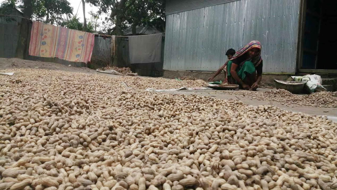 ফারুক হোসেন আরও বলেন, ‘পানির কারণে অনেক বাদাম নষ্ট হয়েছে। কালচে রং হয়ে গেছে। ঝোপা থেকে বাদাম খসে খসে পড়ছে। সব বাদাম অচল হয়ে গেছে। বাজারে এসব বাদামের দাম পাওয়া যাবে না। আমার নিজের এক লাখ টাকার মতো বাদাম নষ্ট হয়ে গেছে। এমন শত শত চাষি রয়েছে পুরো গ্রামজুড়ে। বাদাম নিয়ে তাদের সবার অবস্থা শোচনীয়।’