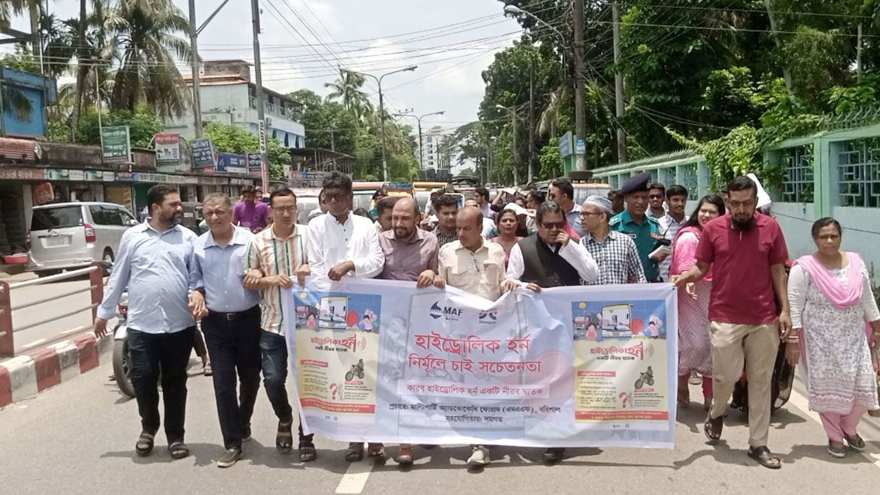 গাড়িতে হাইড্রোলিক হর্ন ব্যবহারে নিরুৎসাহিত করতে বরিশালে প্রচারণা
