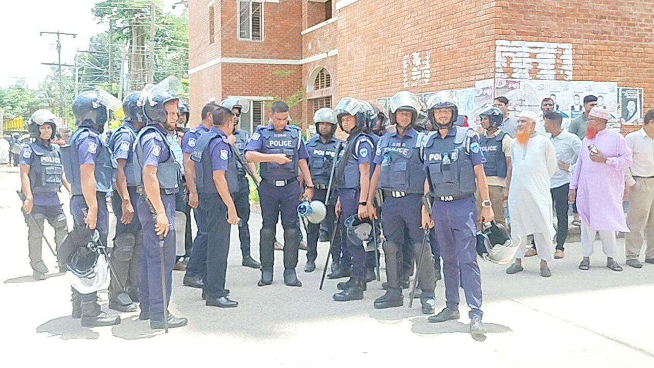 সরেজমিনে দেখা যায়, অতিরিক্ত পুলিশ সুপার (ক্রাইম অ্যান্ড অপস) হাসান মোস্তফা স্বপন, অতিরিক্ত পুলিশ সুপার (সদর সার্কেল) মোহাম্মদ সোহেল রানা ও সদর মডেল থানা পুলিশের ভারপ্রাপ্ত কর্মকর্তা (ওসি) ইয়াছিন ফারুক মজুমদারের নেতৃত্বে আদালত প্রাঙ্গণে পুলিশ অবস্থান নেয়। এ সময় আদালত প্রাঙ্গণ থেকে বহিরাগতদের বের করে দেওয়া হয়। আইনজীবীদের মধ্যে হট্টোগোলের পর আইনজীবী সমিতি ভবনের ভেতরে মাইকিং করে বহিরাগত ও অপ্রয়োজনে অবস্থান নেওয়া লোকজনকে বের করে দেয় পুলিশ।