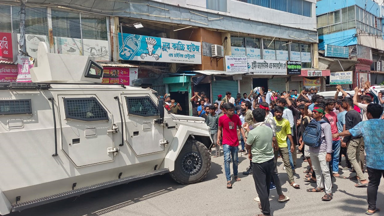 পরবর্তীতে শিক্ষার্থীরা রয়েল মোড় এলাকায় এলে পুলিশ তাদেরকে চারদিক থেকে ঘিরে রাখে। শিক্ষার্থীদের আন্দোলনের মুখে সাত রাস্তার মোড়ে থাকা পুলিশের দুটি গাড়ি পিছু হটলেও দুপুর সোয়া ২টার দিকে পুলিশের সঙ্গে সংঘর্ষ শুরু হয়। সংঘর্ষ শুরুর পর পুলিশ ব্যাপক কাঁদানে গ্যাস নিক্ষেপ করে ছাত্রদেরকে ছাত্রভঙ্গ করে দেয়। এ সময় পুলিশ নগরীর শান্তিধাম মোড় রয়েল মোড়, সাতরাস্তা মোড়, ফুল মার্কেট এলাকা নিজেদের নিয়ন্ত্রণে নেয়।
