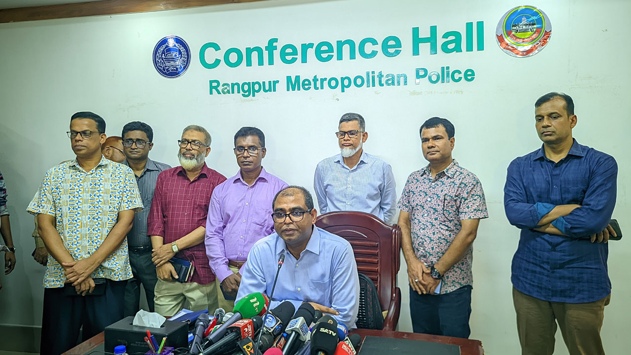 এদিকে রংপুর মেট্রোপলিটন পুলিশের কমিশনার মো. মনিরুজ্জামান বলেন, অনেক কষ্ট, দুঃখ ভরা হৃদয় নিয়ে আপনাদের সামনে হাজির হয়েছি। আমাদের সব অফিসাররা উপস্থিত হয়েছে। আমরা ব্যথিত, আমরা দুঃখিত। রংপুরে অনেক অনাকাঙ্ক্ষিত ঘটনা ঘটেছে। হয়তো আরও ঘটনা ঘটতে পারত কিন্তু আমরা বিএনপি, জামায়াতে ইসলামী, জাতীয় পার্টি ও ইসলামী আন্দোলন বাংলাদেশের নেতৃবৃন্দের সঙ্গে কথা বলেছি এবং তারা আমাদের সহযোগিতা করেছে। তাদের সহযোগিতার কারণে রংপুরে আর কোনো অপ্রীতিকর ঘটনা ঘটেনি।